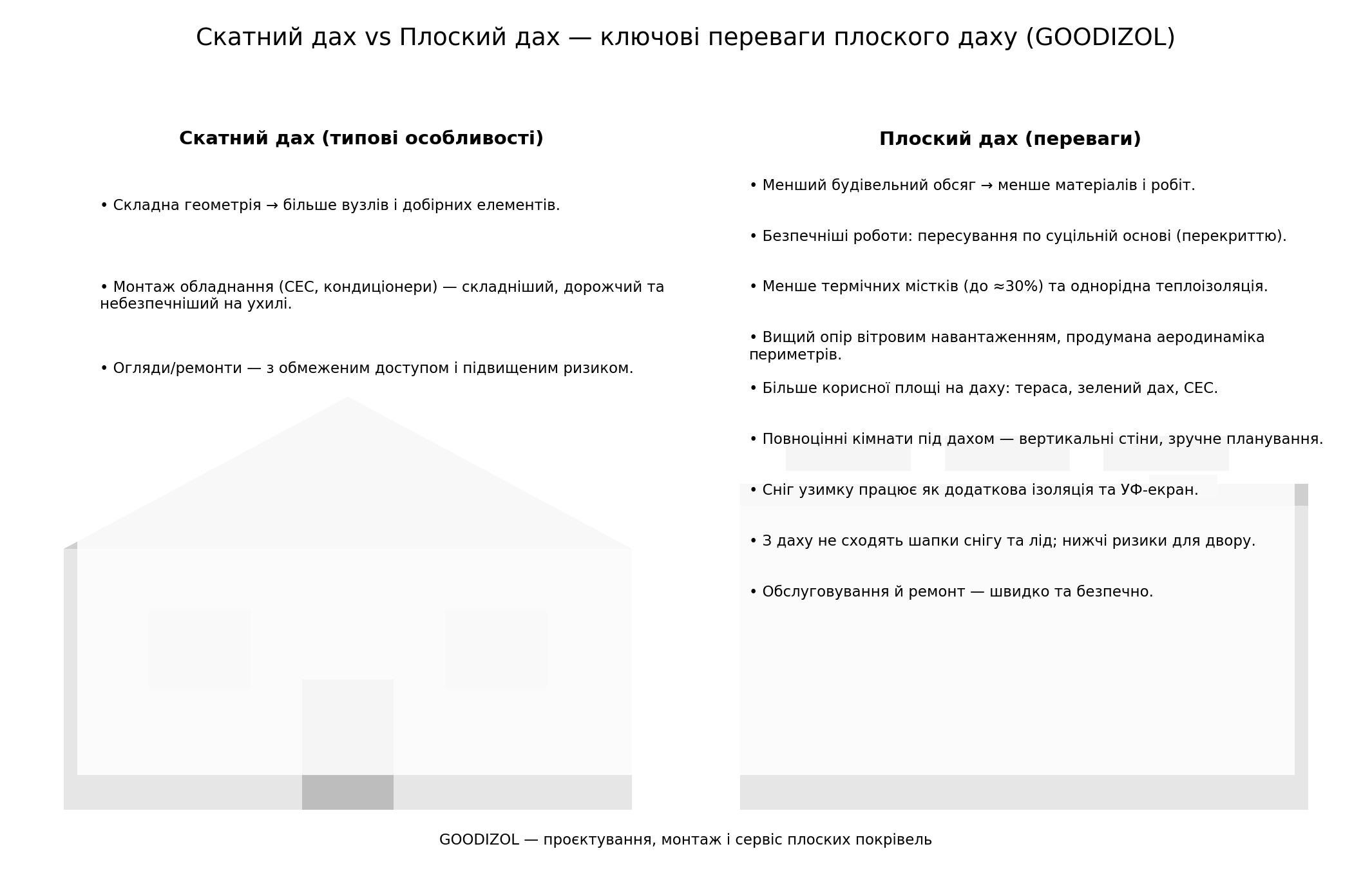 Скатная крыша vs Плоская крыша: инженерные преимущества плоской кровли для частных и коммерческих объектов | GOODIZOL