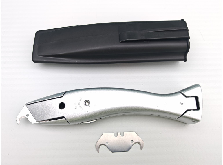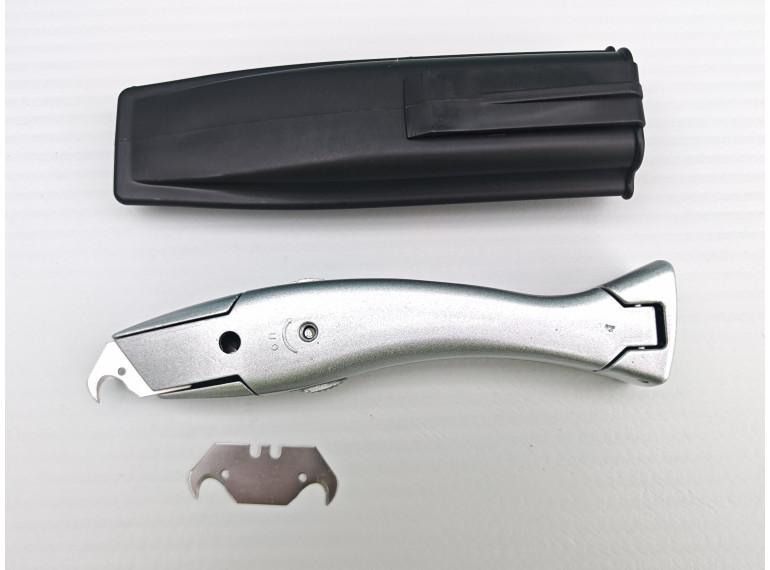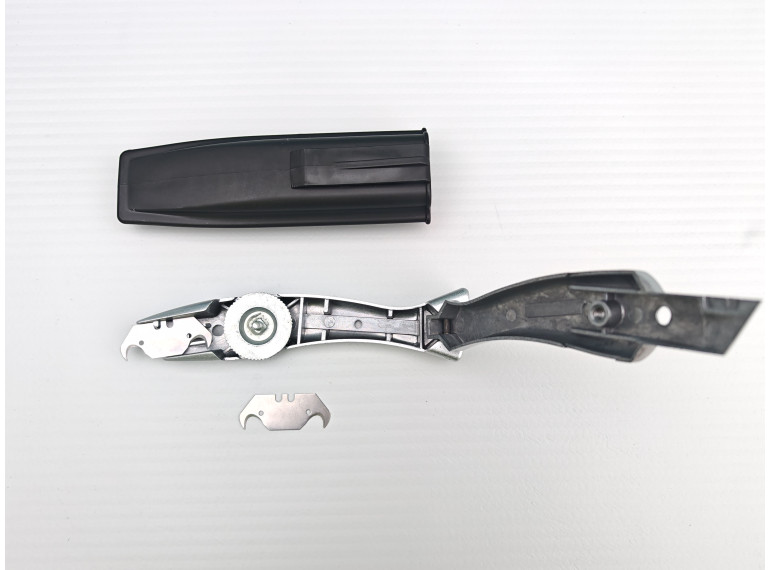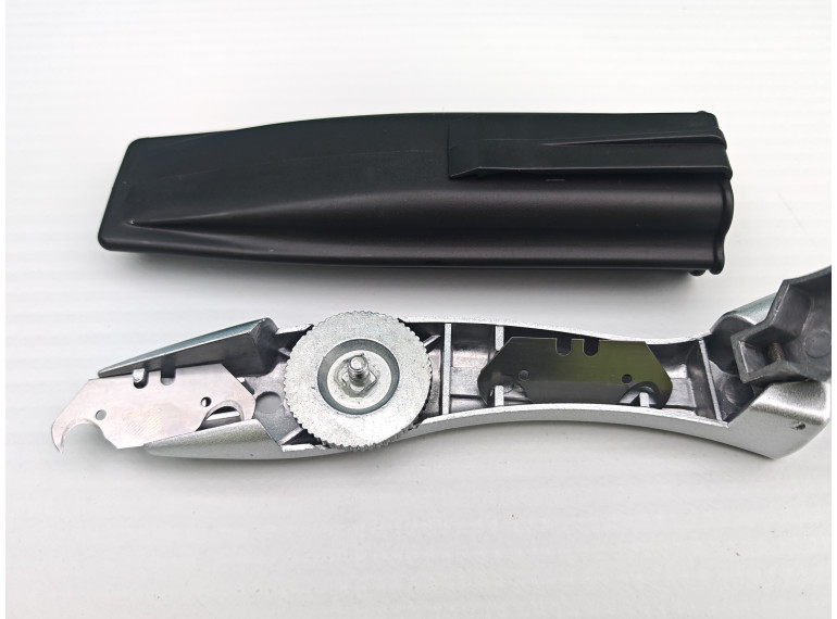 Сменные лезвия: трапециевидное для прямого реза и крючкообразное лезвие с острыми концами для прокалывания и резки листовых материалов- Особенно удобно для таких материалов, как напольные покрытия и пластиковые упаковочные материалы
