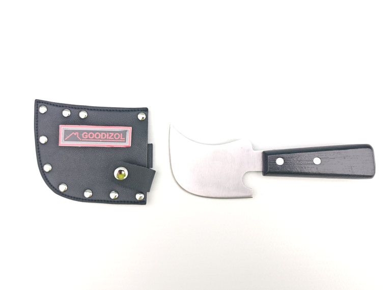 Чёрный кожаный чехол для месяцевидного ножа (лунного ножа) от GOODIZOL — изготовлен из прочной натуральной кожи, обеспечивает безопасное хранение и удобное ношение ножа. Защитит лезвие и предотвратит травмы при транспортировке.