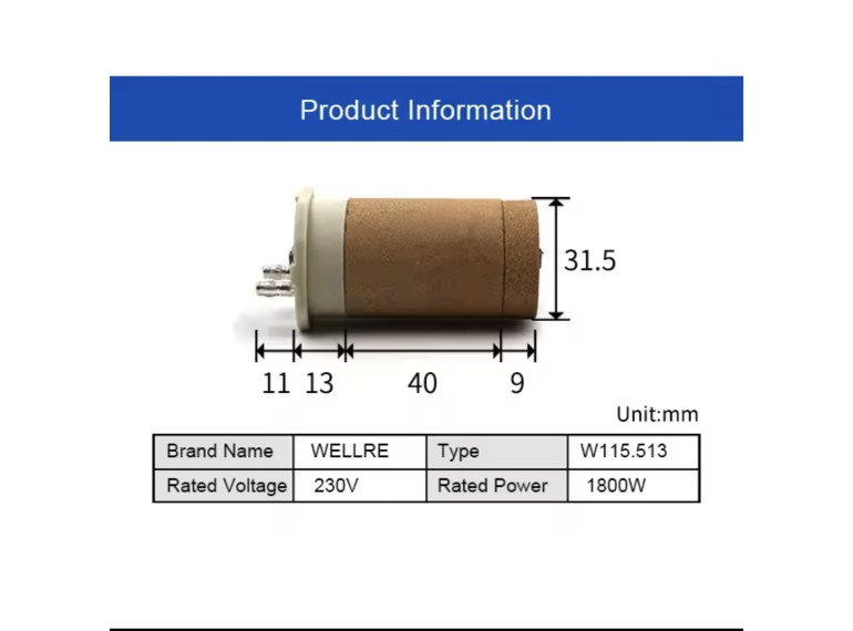 Діаметр нагрівального елемента: Ø31,5 мм