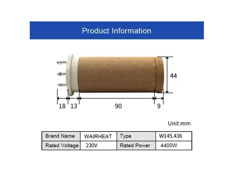 Керамічний нагрівальний елемент 145.436 призначений для заміни у промислових повітронагрівачах серії LHS 41L і використовується як запасна частина для виробів 145.435 (LHS 41L PREMIUM), 145.726 (LHS 41L CLASSIC) та 145.729 (LHS 41L SYSTEM).